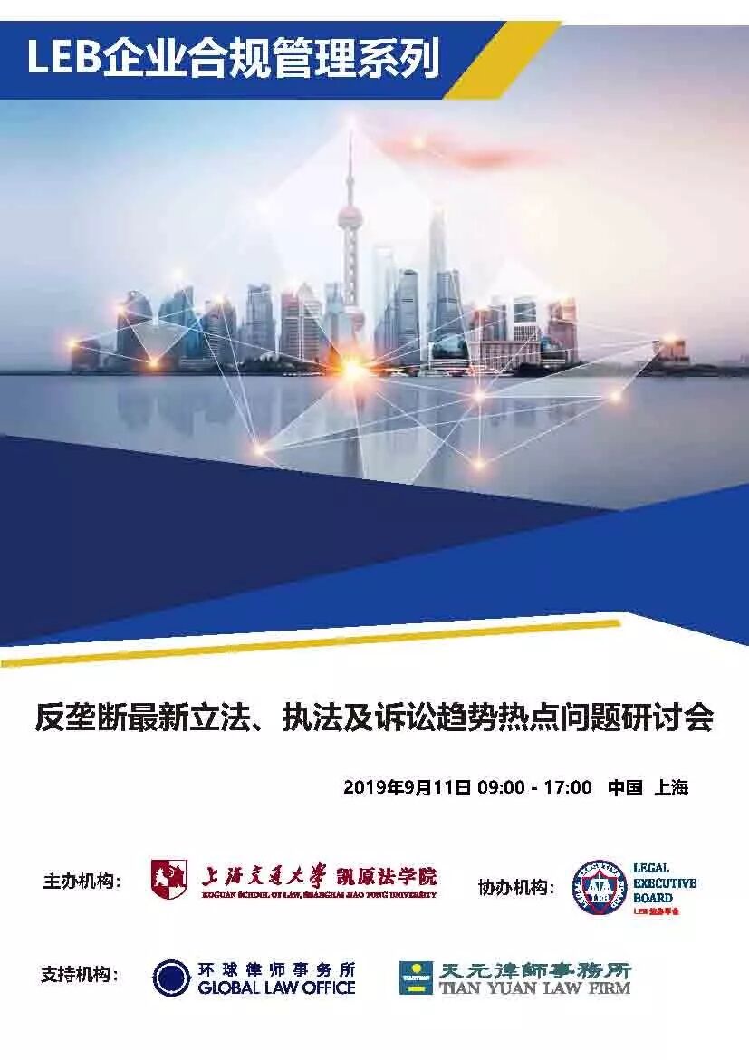 9月11日,LEB法务平台与上海交通大学凯原法学院合规研究中心合作,举办了“反垄断最新立法、执法及诉讼趋势热点问题研讨会”。此次活动邀请了反垄断法领域多位专家、教授及律师,分别就反垄断领域的最新热点问题展开探讨。